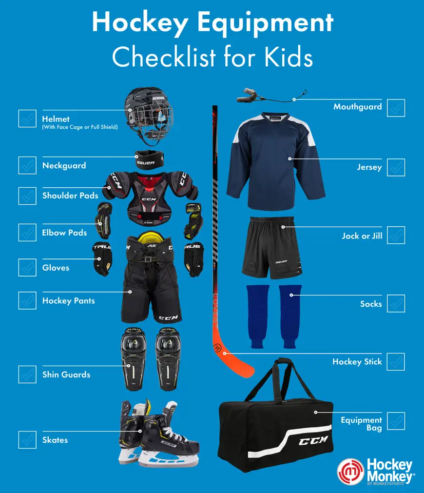 To make sure your player has the safest and best time on the ice, full protective equipment is required to play ice hockey: